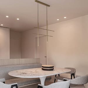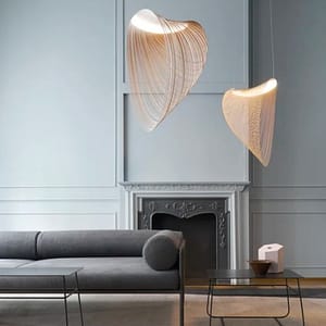 Een hanglamp met een luchtig, zwevend ontwerp dat een gevoel van lichtheid en beweging brengt.